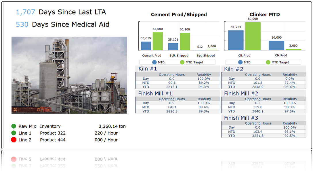Combine the display of current operating status with reliability data, month-to date KPI’s and graphics.