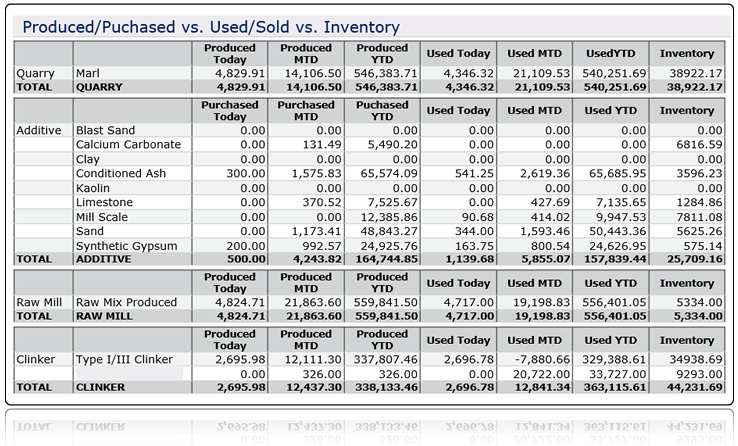 ProductionData.com can provide Daily, Month-To-Date and Year-To-Date totals or calculate Inventories.